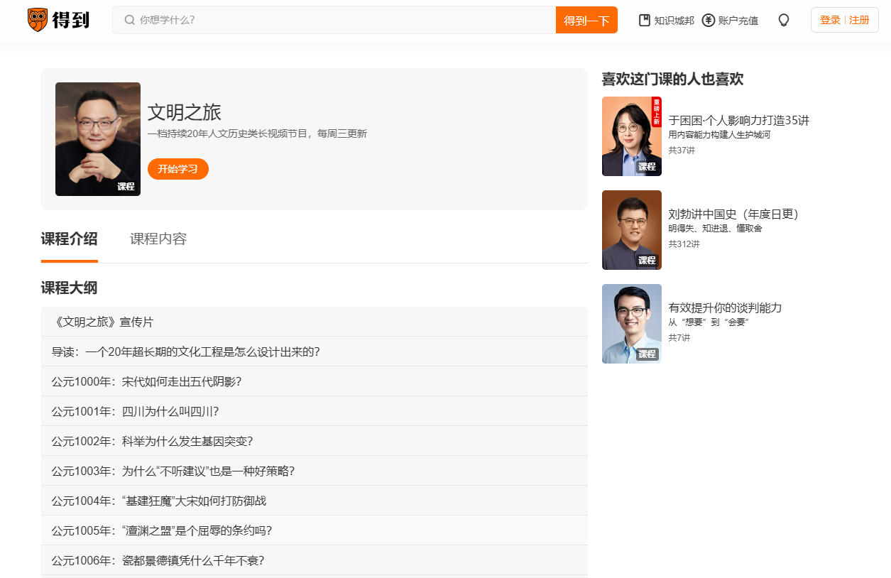 2. Dedao Course Page.