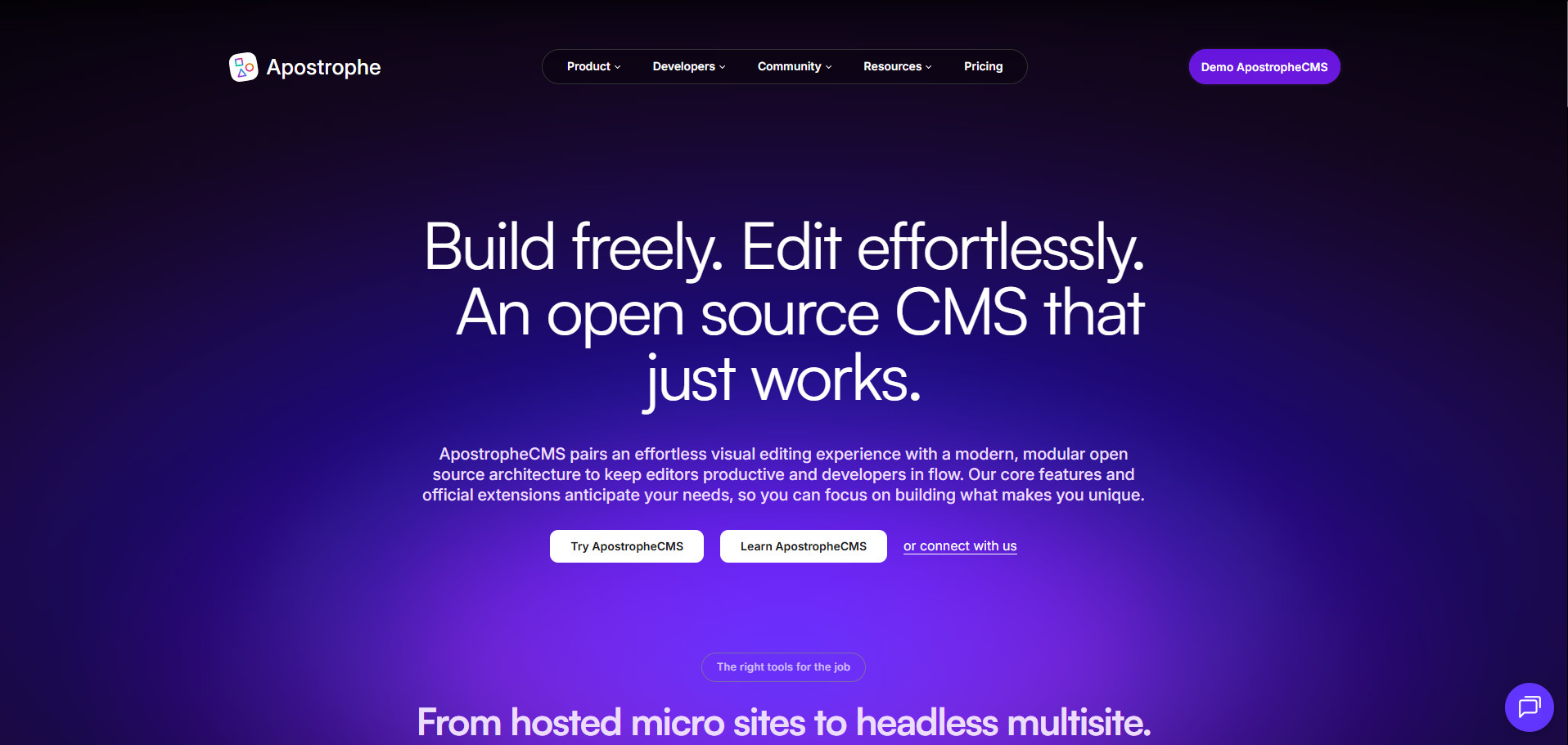 Pros: ApostropheCMS combines intuitive in-context editing with headless architecture, offering a highly customizable content management experience that supports multi-site deployment, enterprise-grade security, and an active community ecosystem, making it ideal for projects requiring flexible scalability and rapid development.