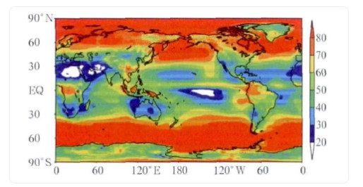 1. Global average total cloud cover distribution from 1979 to 2009.