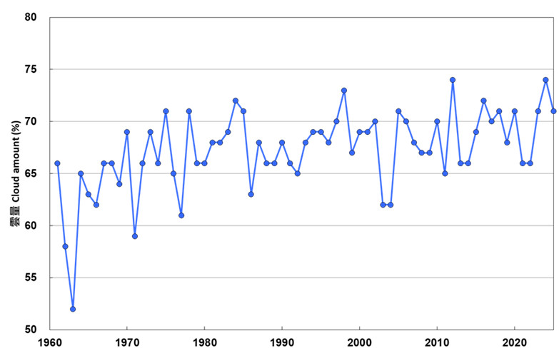 2. Average annual cloud cover recorded at the Observatory Headquarters (1961-2025).