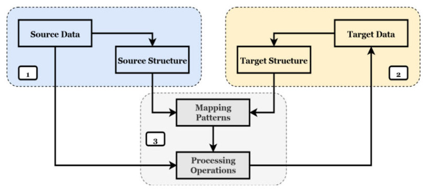 2. Data mapping process: Identify the source end and the target end, and associate the two structures through a mapping pattern.