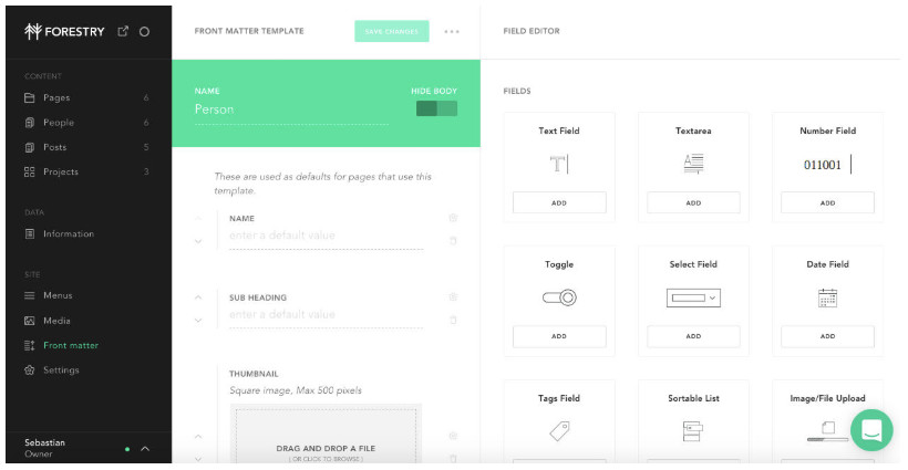 Pros: Forestry uses Git as its sole source of truth for content management, eliminating the need for additional databases. Version history and diff comparisons rely entirely on Git’s native mechanisms. By templating front matter metadata and enforcing field constraints, it ensures content structure consistency while minimizing editing errors—providing robust CMS capabilities without compromising the performance or security of static sites.