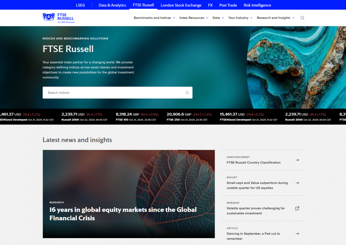 FTSE Russell is a global provider of financial market indices that track the performance of stocks, bonds and other financial instruments. FTSE Russell is part of the London Stock Exchange Group (LSEG), which combines two major index brands: FTSE (Financial Times Stock Exchange) and Russell Indexes. In particular, it is used as a benchmark for assessing the stock market performance of companies and is widely used by asset managers and institutional investors.