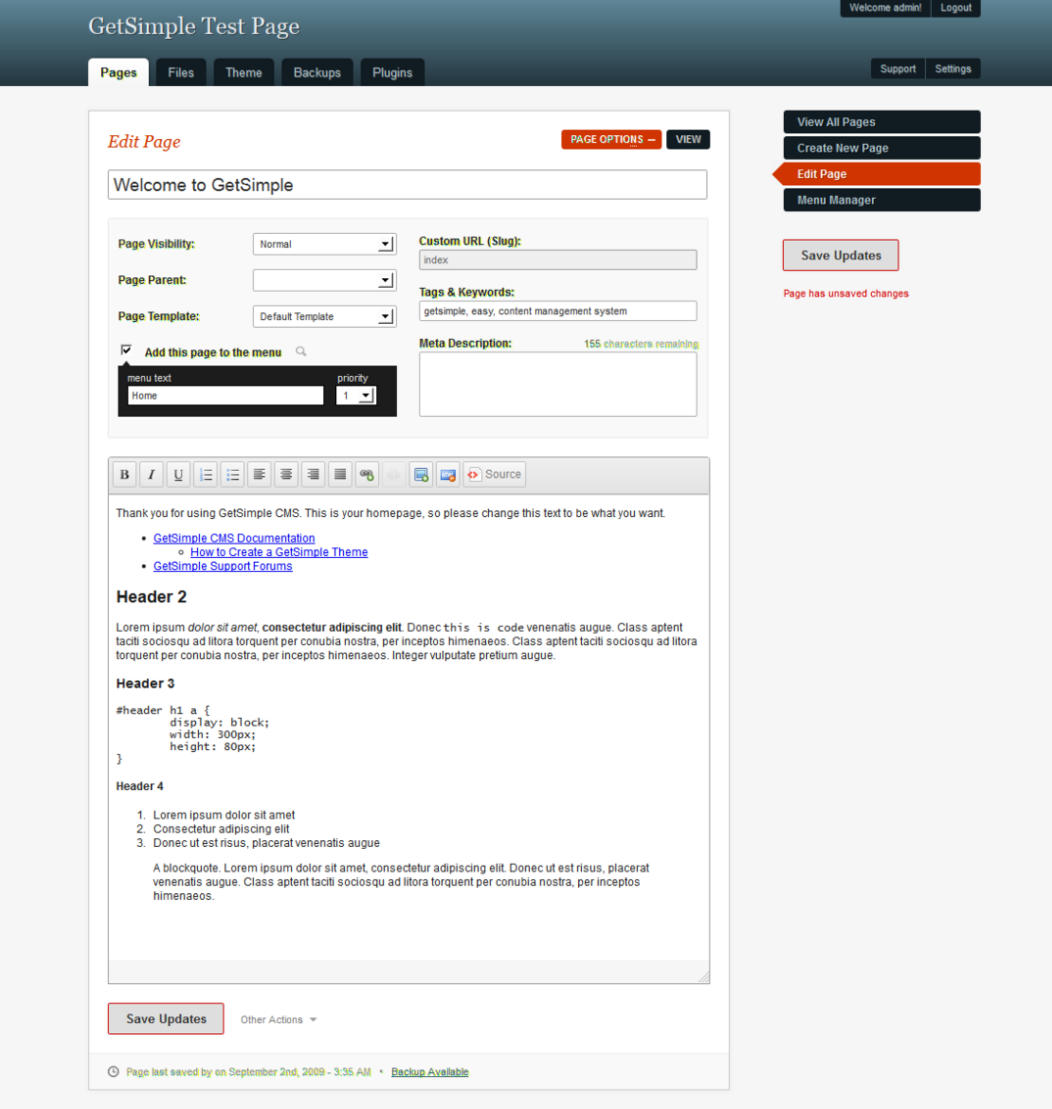 1. GetSimple CMS test page.