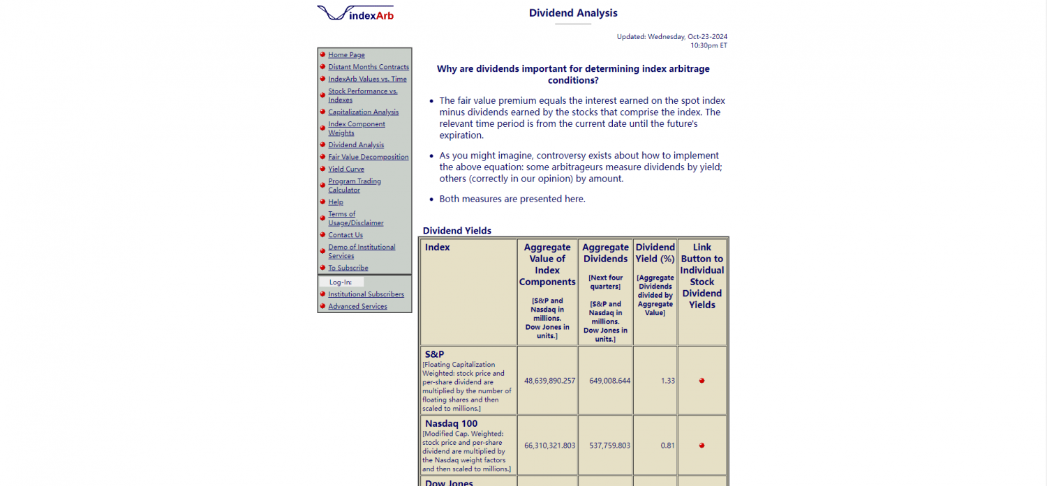 IndexArb is a service provider of index trading-related information, dedicated to providing institutional clients with key information needed for index-based futures, options, ETFs and custom basket transactions. Its services include dividend forecasts, ex-dividend schedules, stock quantity statistics, etc., to help clients optimize their trading strategies and decision-making processes.
