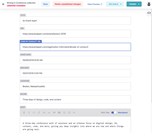 Pros: Netlify CMS uses Git as its core to implement content version control and collaboration, allowing static website content to be managed through an intuitive interface without the need for a database. It combines lightweight deployment, low maintenance costs, and high security, making it particularly suitable for small and medium-sized projects with low technical barriers.