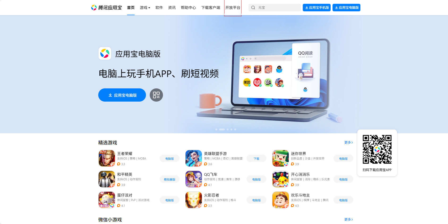 1. Tencent Appstore homepage.