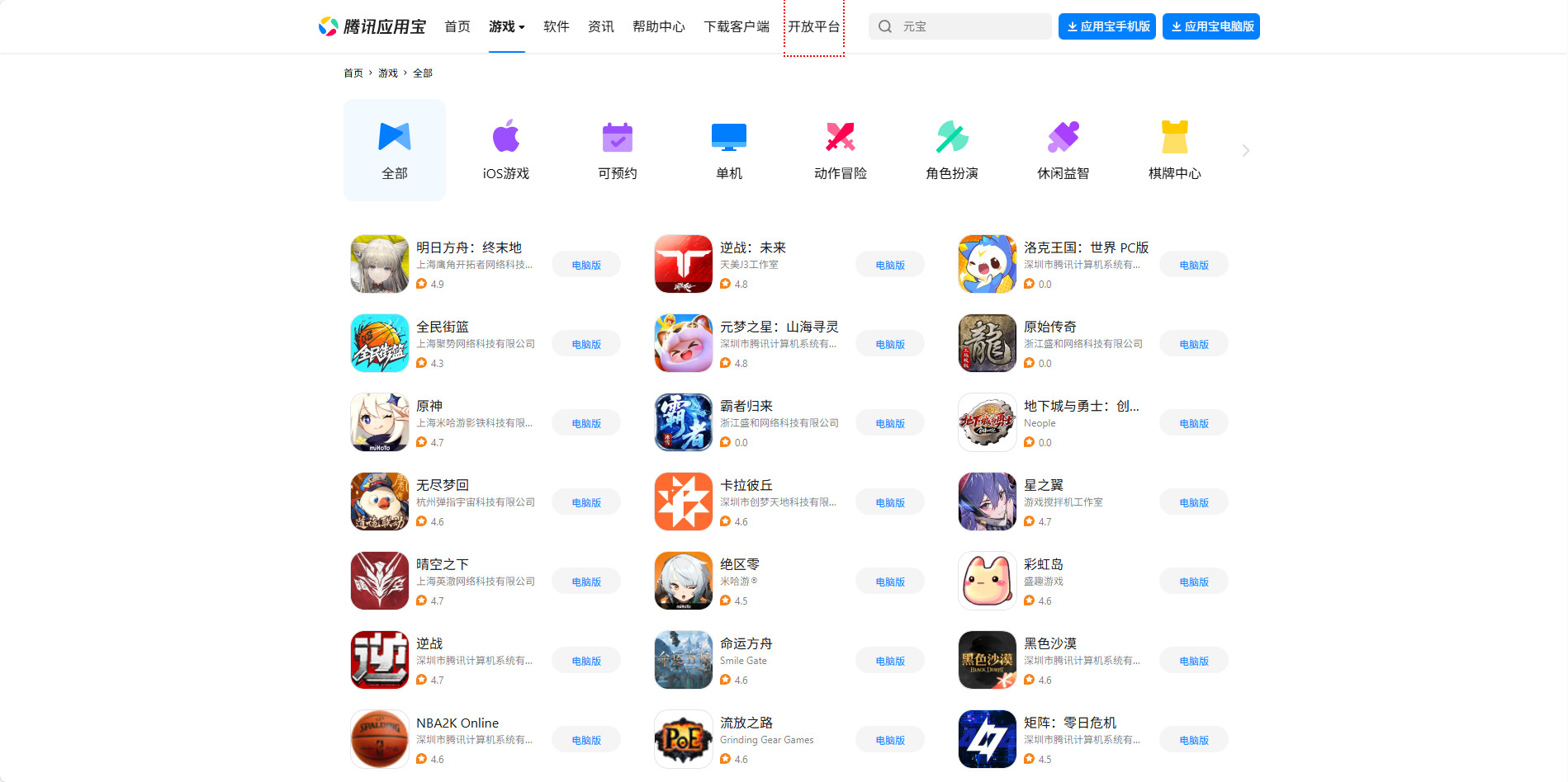 2. Tencent Appstore game page.