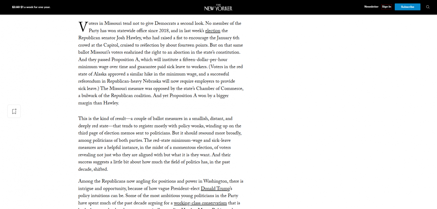 Cons: Since The New Yorker is a literary magazine, some articles may be difficult for ordinary readers to understand and require certain reading and comprehension skills.